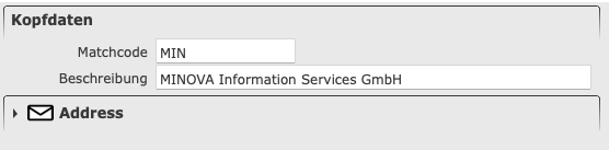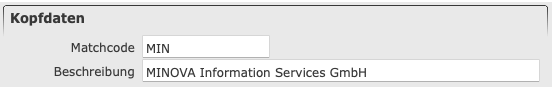 Jede Maske beginnt mit den Kopfdaten. Diese besitzen das Feld MatchCode, in dem ein eindeutiges Kürzel für den anzulegenden Datensatz vergeben werden muss.