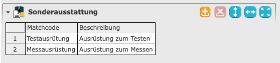 Die Tabelle kann sowohl als Element in einer Sektion oder eigenständig genutzt werden. Die Funktionsweise unterscheidet sich bei beiden Arten nicht. Die Tabelle hat eine eigene Schaltflächenleiste. Diese enthält Funktionen exklusive für die Tabelle. Die Schaltflächen sind unter Tabellen Schaltflächen genauer beschrieben.